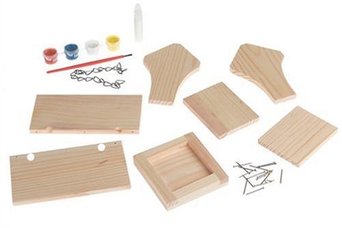 Use the components in this kit to build and paint a wooden birdfeeder. Includes wood pieces, nails, glue, paint, brush, and instructions. Assemble size: 4 1/2" x 6" x 5 1/2". Ages: 5 + Manufacturer: Toysmith